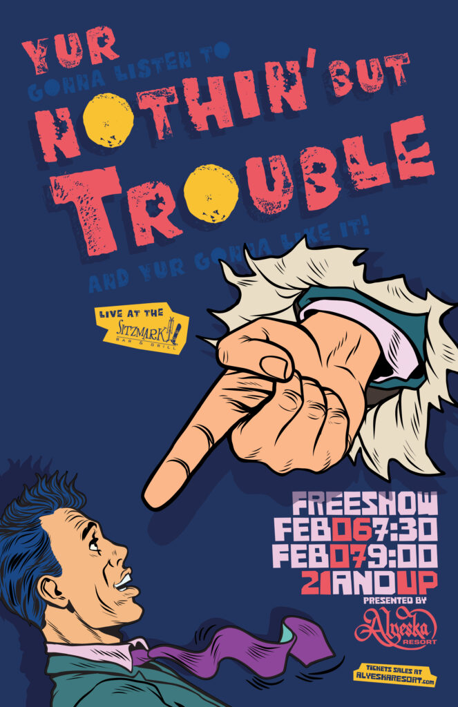 Nothing But Trouble Gig poster for the cover band Nothin’ But Trouble at The Sitzmark bar and grille.